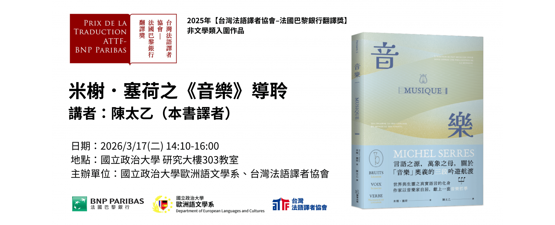 米榭.塞荷之《音樂》導聆 - 2025年 【台灣法語譯者協會-法國巴黎銀行翻譯獎...… -