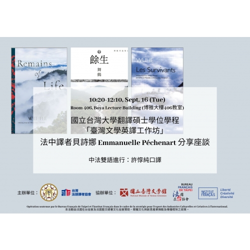 活動記事: 2025「Vice-Versa Taïwan 臺法翻譯工作坊」導師Emmanuelle Péchenart參與台大翻譯工作坊活動記事: 2025「Vice-Versa Taïwan 臺法翻譯工作坊」導師Emmanuelle Péchenart參與國立台灣大學翻譯碩士學位學程 「臺灣文學英譯工作坊」