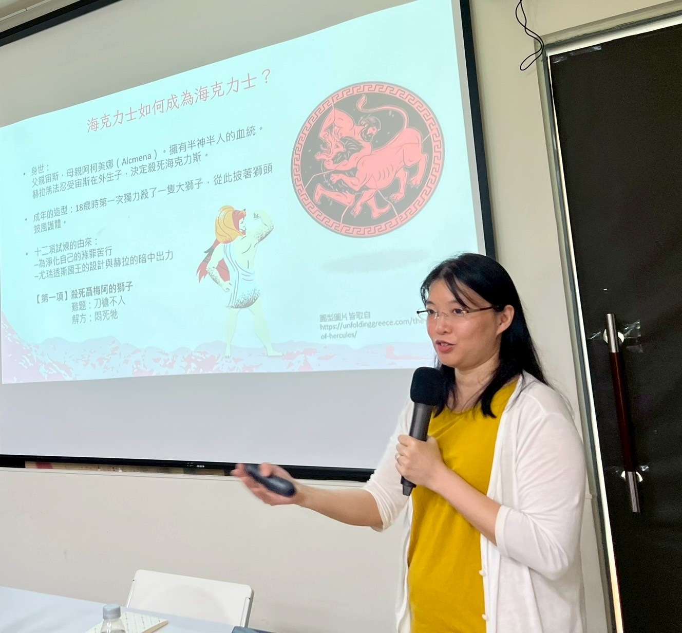 第二天郁雯老師透過自身專職翻譯近十年的經驗,結合海克力士的十二試煉讓我們想像勞苦的翻譯任務。海克力士之成為海克力士,不僅需要他與生俱來的力量,還需機靈的頭腦才終於完成那艱鉅的十二試煉。而譯者呢?先要了解自己的志向、興趣或專長,擁有什麼資源,甚至清楚自己的能力,才能順利「出道」。